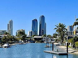 1960-yillarga kelib Oltin qirgʻoq infratuzilmasi sezilarli darajada kengaytirildi, birinchi koʻp qavatli turar-joy binolari va mehmonxonalar paydo boʻldi. 1981-yilda Gold-Kost aeroporti terminali ochildi va 1980-yillar chet el investitsiyalari nuqtai nazaridan muvaffaqiyatli boʻldi, yapon ishbilarmonlari osmonoʻpar binolar va tematik bogʻlar qurilishiga katta sarmoya kiritdilar.