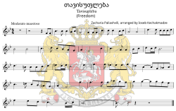 „Tavisupleba“ musiqasi gruzin klassik musiqa janrining otasi Zacharia Paliashvili tomonidan yaratilgan Abesalom da Eteri (1918) va Daisi (1923) ikkita gruzin operalaridan olinga holda moslashtirilgan.