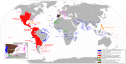 ![]() Bir vaqtlar Ispaniya monarxiyasi yoki imperiyasining hududlari boʻlgan dunyoning territoriyalari | |||||||||||||||||||||||||||||||||||||||||||||||||||||||||||