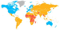 - Dengizga chiqish imkoni boʻlmagan rivojlanayotgan mamlakatlar (dengizga chiqa olmaydigan mamlakatlar koʻpincha iqtisodiy va boshqa kamchiliklarga duch kelishadi).