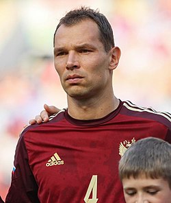 U 2002-yilda Rossiya terma jamoasi safida debyutini oʻtkazgan va ikkita Yevropa chempionati hamda ikkita FIFA Jahon kubogi uchun jamoalar tarkibiga kirgan. Ularga UEFA Yevro-2008 yarim finaliga chiqishga yordam bergan, 2014-yilgi FIFA Jahon chempionatida 100-oʻyinini oʻtkazgan va mezbon jamoa tarkibida 2018-yilgi futbol boʻyicha jahon chempionati chorak finaliga chiqgan. 2015-yil 8-sentabr kuni u oʻzining 110-xalqaro oʻyinini oʻtkazgan va Viktor Onopkoni ortda qoldirib, Rossiya terma jamoasi tarixidagi eng koʻp oʻyin oʻtkazgan futbolchiga aylangan. 2015-yilning 17-noyabrida u oʻzining 114-uchrashuvini oʻtkazdi va u terma jamoalar safida eng koʻp oʻyin oʻtkazgan rossiyalik futbolchiga aylangan.