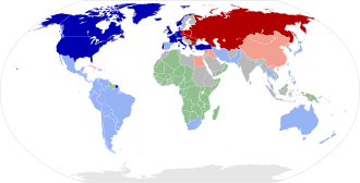 Qoʻshma Shtatlar va SSSR toʻgʻridan-toʻgʻri harbiy ziddiyatga kirishmagan boʻlsa ham, ularning dunyoga taʼsir oʻtkazish borasidagi raqobati koʻpincha butun dunyo boʻylab lokal harbiy ziddiyatlarga olib kelar edi. AQSh va Sovet Ittifoqi oʻzining taʼsir doirasini yaratdi hamda ularni harbiy-siyosiy bloklar – NATO va Varshava bitimi bilan mustahkamladilar.